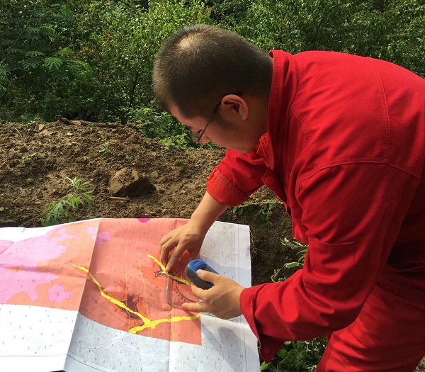 初入项目,远离繁华的城市,面对荒凉、萧瑟的大山和施工道路上神出鬼没的毒蛇、蚂蟥,刘佛刚的心里不免有几分落寞和犹豫。但他并没有因此止步不前,纵情祖国大好河山中为国探宝的初心,是他坚定信念、勇往直前的力量源泉。至此,刘佛刚便沉下了心,每天一大早,他背着地质包,拿着地质锤,遇河淌水、逢沟穿沟、遇梁翻山,一步一个脚印,力达每一个地质点,朝着大山深处迈出了坚定的步伐。