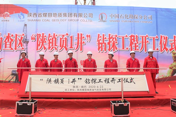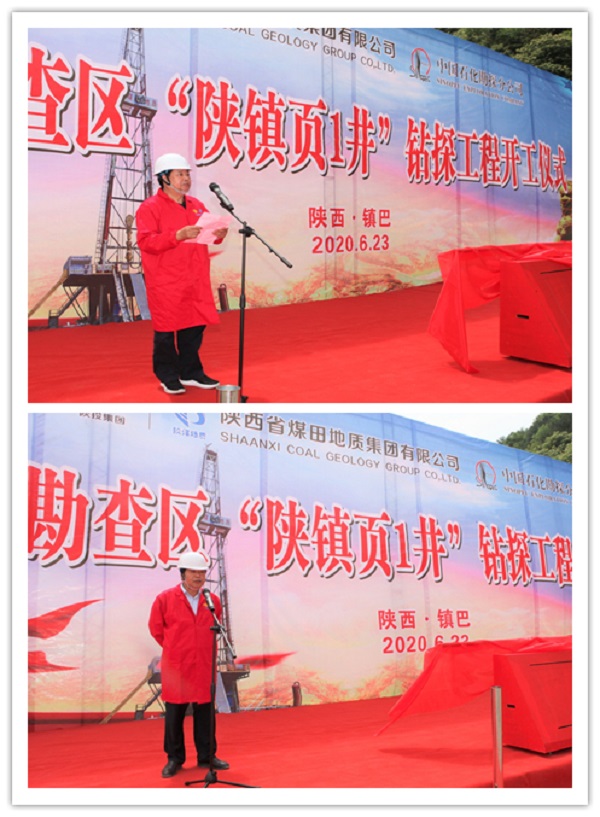 开工仪式上,集团党委书记、执行董事、总经理谢辉致欢迎词,介绍了项目概况以及出席开工仪式的各级领导和来宾,并表示欢迎和感谢。陕西省能源局总工程师黑喜生、中石化勘探分公司元坝项目部经理李文东分别发表讲话,对“陕镇页1井”钻探工程开工表示祝贺,并强调了项目的重要意义和注意事项。汉中市人大常委会副主任、镇巴县县委书记赵勇健宣布“陕镇页1井”钻探工程开工,并与其他出席领导共同推按开工启动仪,钻机开钻。随后,出席开工仪式的各级领导在工作人员的陪同下参观了“陕镇页1井”钻机生产情况。陕南镇巴地区页岩资源勘查是由陕西省煤田地质集团有限公司与中石化勘探分公司联合实施的重点资源勘查开发项目,承载着省委、省政府领导的密切关注和全力支持,也寄托着大巴山区人民的热情期盼。“陕镇页1井”是镇巴地区的首口页岩气参数井,钻探工程的开工,标志着镇巴地区页岩气勘探开发进入了一个新的阶段。项目持续向好推进,对于转变区域能源供给结构,缓解清洁能源供应紧缺局面,推动陕南经济社会发展,助力当地打赢脱贫攻坚战,具有重要的战略意义。