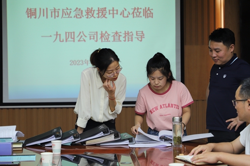 6月8日,铜川市应急救援中心检查组一行6人,对一九四公司应急管理及安全生产工作进行检查指导,公司执行董事、总经理、总工程师闫和平陪同检查。