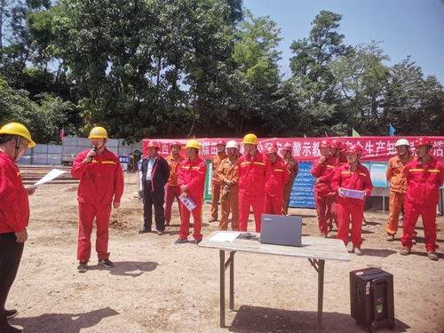 钻机井队长首先带领全体现场人员进行安全承诺宣誓,大家将右手放在自己的胸口,庄重有力的喊出了自己的安全誓词。随后开展现场警示教育与安全知识抢答活动,抢答题目由安全环保监察部人员精心挑选,题目均来自于现场作业过程,涵盖内容包括个人防护、设备设施、现场操作等方面,竞答现场大家积极参与、热闹非凡。最后在生活区组织职工观看了安全微电影《生命册》,再次提醒大家珍惜生命,关注安全!