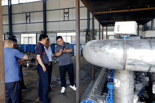 7月8日,陕煤地质集团副总经理杨文海、首席专家张晓宏莅临一九四公司机械厂,对XMG-1移动式回灌站的加工制造进行中期检查指导。一九四公司总经理岳正喜、常务副总经理刘小康,陕西中煤新能源有限公司总经理李兵,陕西新眉清洁能源有限公司总经理吕俊陪同,眉县清洁能源供暖项目经理刘非进行了现场汇报。