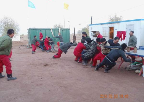2014年5月1日“劳动节”这天,内蒙古大风降温,但严寒抵挡不住我井队员工对节日的热情。在公司工会的安排下,井队因地制宜地积极组织全队员工在“劳动节”期间开展了丰富多彩的文化娱乐、技能比武等活动。