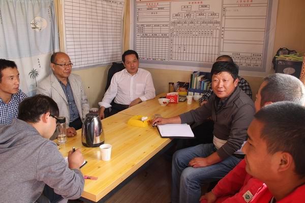 十一点半左右,从数百里之外,风尘仆仆而来的公司总经理姬永涛、副总经理桑卫功、经营管理部部长王恒以及陪同慰问的天然气项目部经理张军、副经理王宏伟乘坐的车辆缓缓驶进了井队,姬总他们一下车,就热情的和职工们打招呼。随后,姬总他们一行对井队现场和生活区进行了视察,询问了工人们的工作和生活情况;工人们也都一一回答了领导们提出的一些日常生活和工作中的问题,并和领导们进行了数小时交心和聊天。
