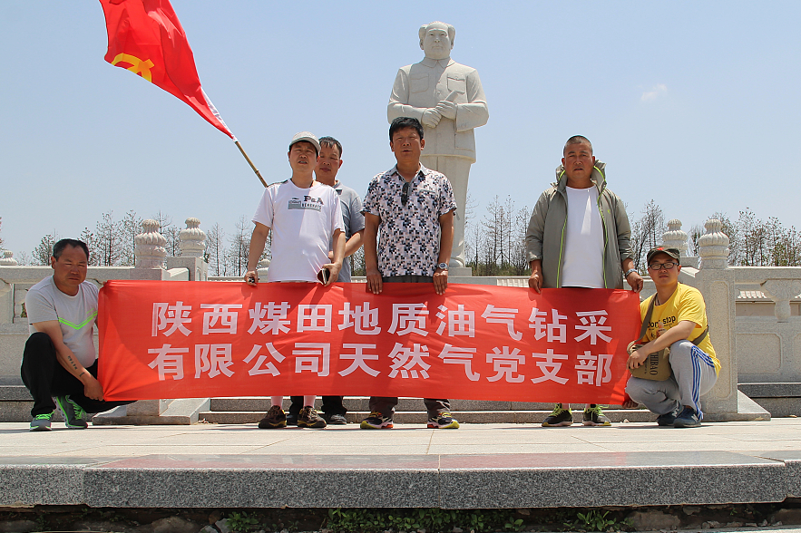 图:2 天然气党支部党员在毛主席纪念碑下合影