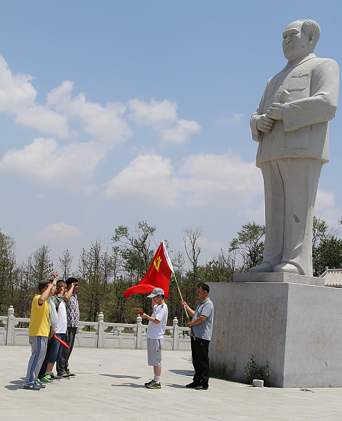 为迎接党的95岁生日,7月1日天然气支部成员和积极分子来到位于定边县东三公里的毛主席纪念碑广