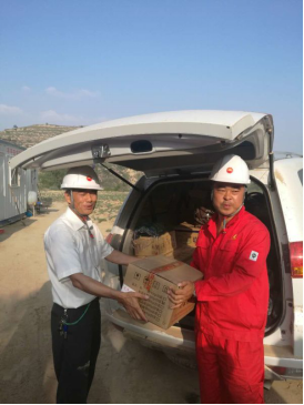 “职工兄弟们辛苦了,这是工会为大家带来的防暑降温物品。希望大家保重身体,为公司发展再做新的