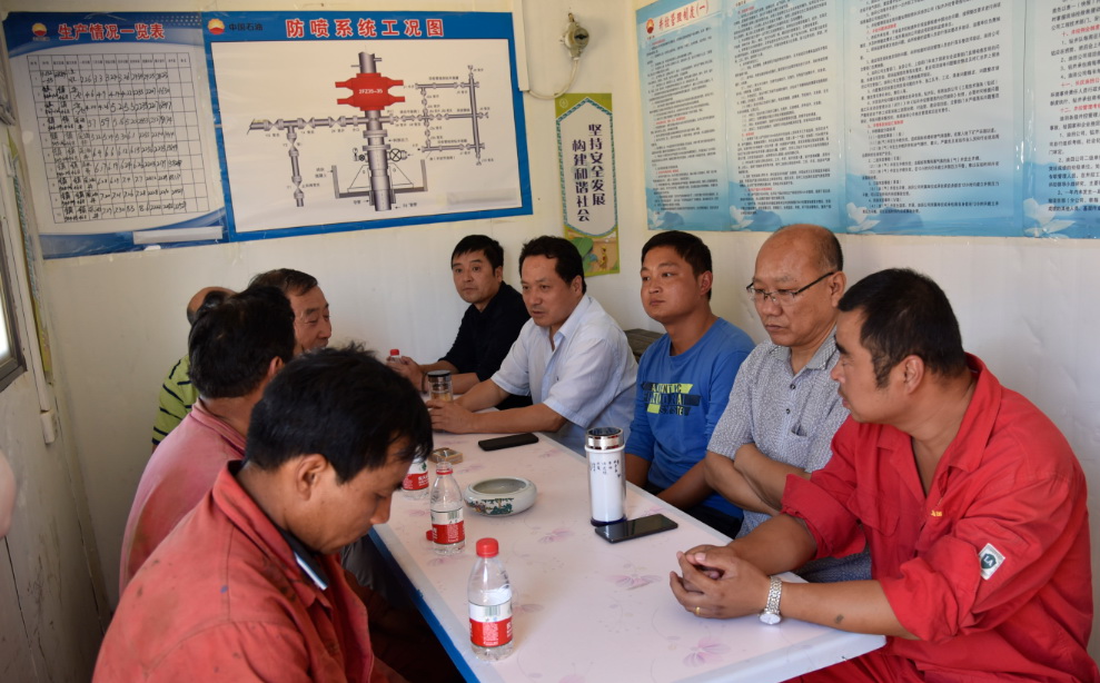 井队一线职工亲切交谈,在谈话中姬总了解了井队的安全生产情况,并充分肯定了大家的工作,希望大家再