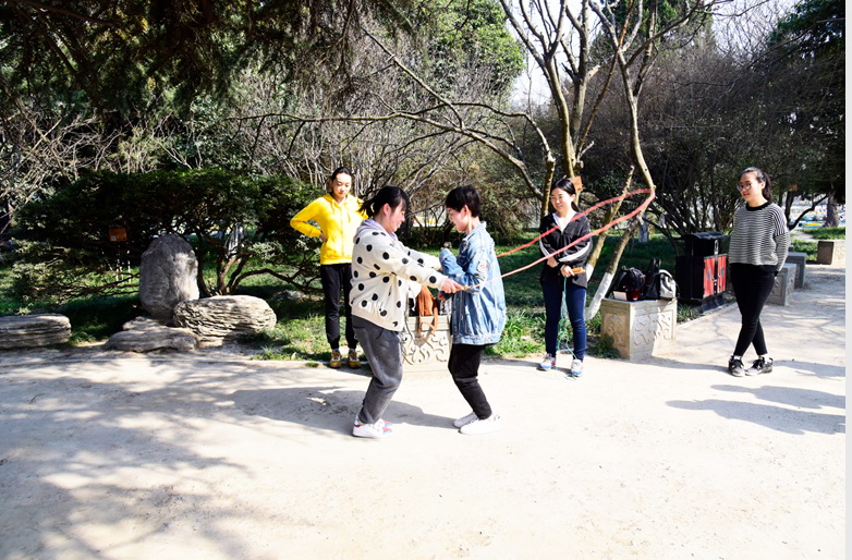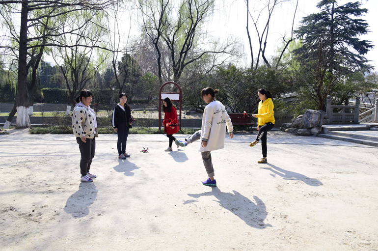 女职工来到西安兴庆公园开展踢毽子、跳绳活动,大家度过了一个开心而又难忘的节