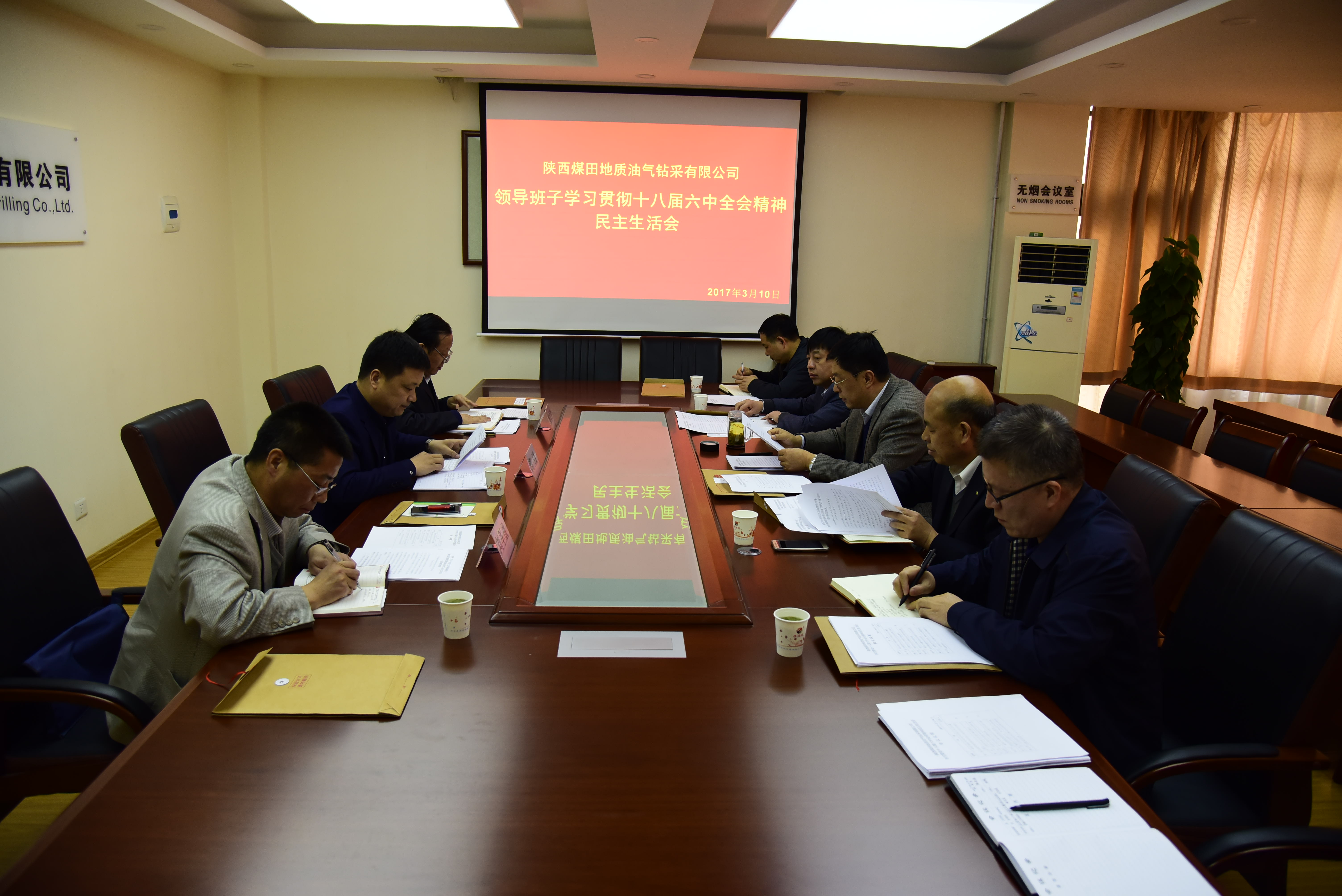 油气公司领导班子学习贯彻十八届六中全会精神主题民主生活会在陕西省煤田地质集
