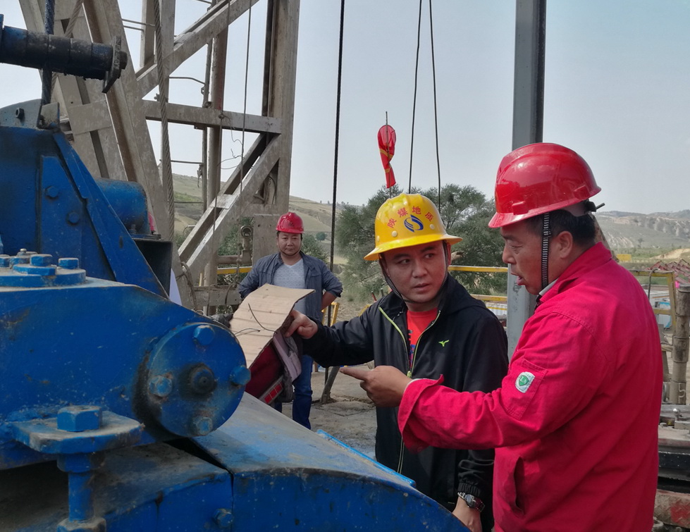 在钻井施工现场,雷鸣总经济师和张鑫副主任详细检查了工程进度、施工质量、现