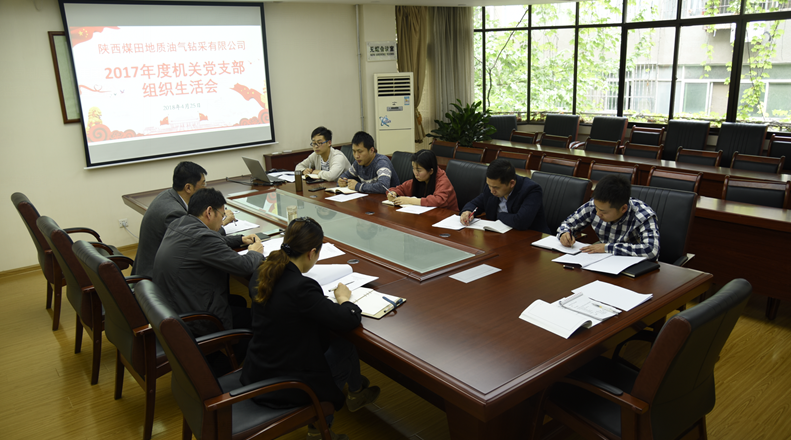 4月25日下午,油气钻采公司机关党支部组织机关全体党员召开2017年度专题组织生