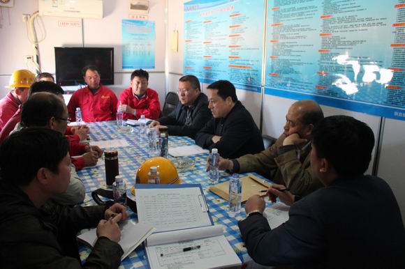 在施工现场召开了项目部和井队骨干人员座谈会,姬永涛及公司领导认真听取了开工以来各项目的施工情况汇报,详细了解项目施工存在的问题及工作困难后,姬永涛对各项目部开展的工作给予充分肯定,解答了大家关心的问题,通报了公司第一季度的生产经营情况,分析了目前面临的形势,勉励大家发扬地质人特别能吃苦,特别能战斗的精神,并对今后工作提出四点要求:.要求大家牢固树立“安全第一”的理念,把安全清洁生产和员工身体健康放在首位,狠抓工程质量,做好各项预案及演练工作,确保施工安全。‚.要求大家树立“创新”观念,不断总结,不断学习,特别是优选、优化钻井施工技术,确保钻得好、钻得快。ƒ.要求大家牢固树立“成本意识”,完善材料验收程序,细处着手,严控“跑、冒、滴、漏” 现象,降本增效,精心组织,做好经营管理工作,确保工程有一个好的经营结果。④.要求每一位员工要树立团队意识,发扬团队精神,大事讲原则,小事讲风格,和谐共事,做好传、帮、带工作,共同提高,努力营造人才辈出的环境,学习借鉴一切有利于井队发展的鲜活经验,认认真真做好现场标准化工作,努力打造标杆钻井队。随后,各项目部负责人表示今后将更加努力工作,让甲方、监理、公司满意,进一步强化安全意识和技术质量意识,加强现场管理和文明施工,打造精品工程。(王宏伟 郑建林)