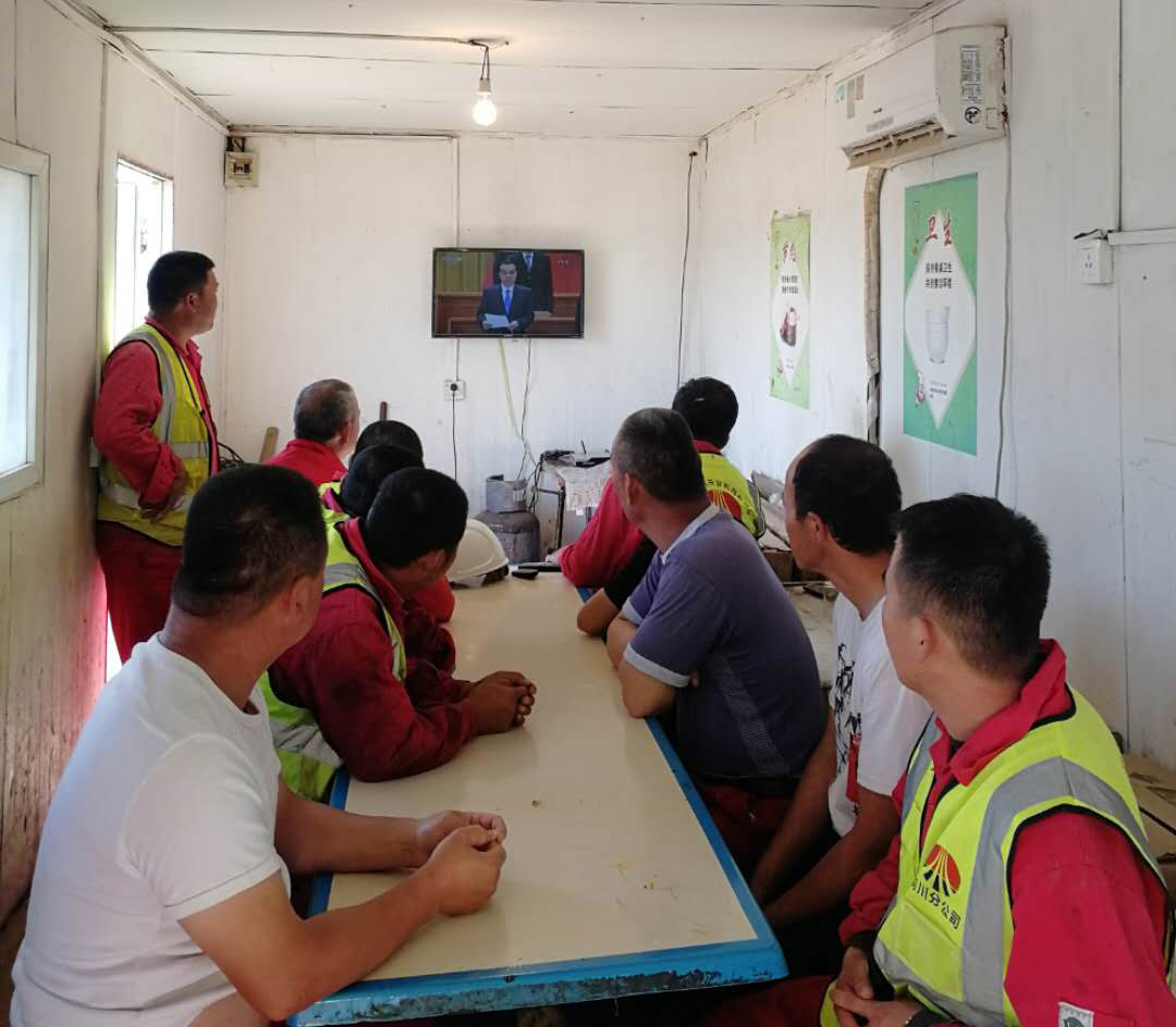 9月8日上午10时,油气公司组织全体职工收看由中央广播电视总台、新华网现场直播的在北京人民大会堂隆重举行的全国抗击新冠肺炎疫情表彰大会。野外各项目部、井队分别在施工现场收看了此次直播。