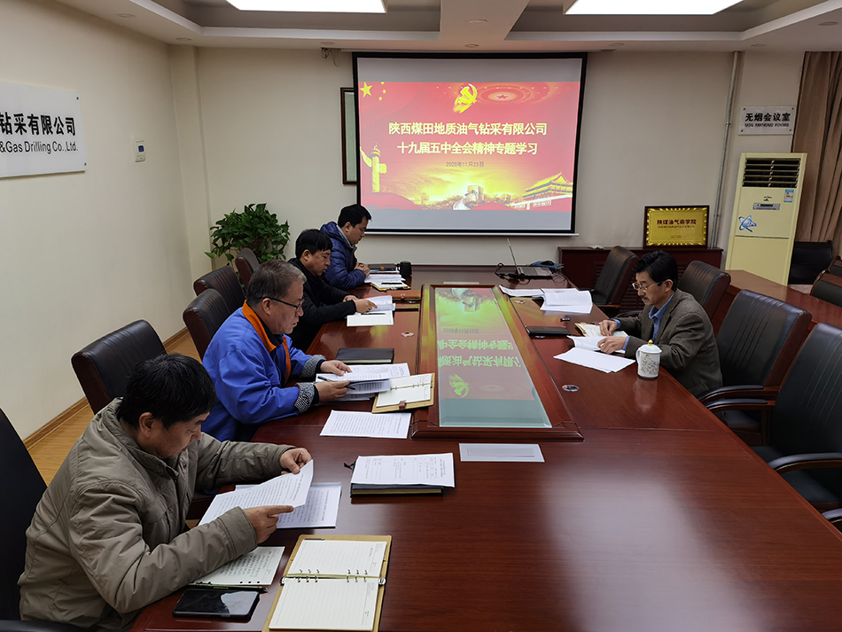 11月23日,油气公司党总支组织召开理论学习中心组2020年第十一次集体学习,传达学习十九届五中全会精神,党总支书记桑卫功主持会议,领导班子成员参加学习。