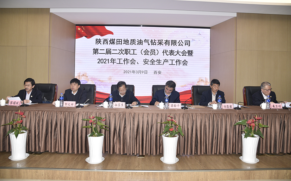 3月9日,油气公司2021年度工作会在西安经贸宾馆顺利召开。陕煤地质集团公司党委副书记梁榆平、工会主席杨敬敏、集团党委工作部组织处副处长拓宝生出席会议。公司领导班子成员及职工代表参加会议。