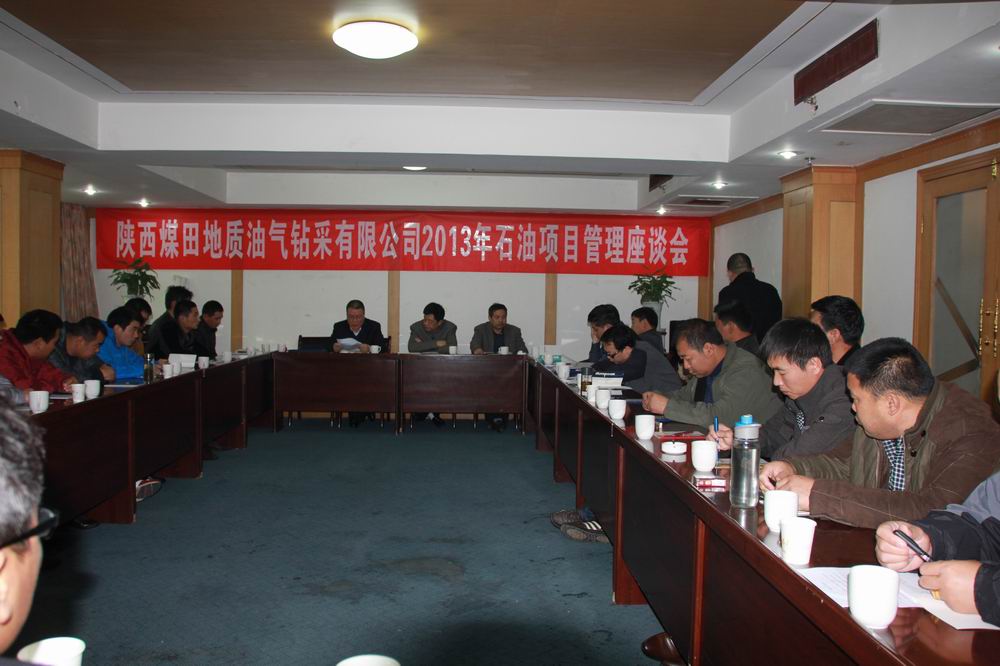 2013年11月14日,油气钻采公司石油项目部利用冬训放假时间在西安经贸宾馆召开了2013年石油项目管理座谈会,参加这次座谈会的有40185井队、40186井队司钻以上骨干人员及部分职工代表;工程技术部定向人员、公司各部门负责人列席了会议;油气钻采公司总经理姬永涛、党委书记陈先虎、总工程师王俊立出席了这次会议并分别作了讲话。会议由油气钻采公司副总经理、石油项目部经理桑卫功主持。