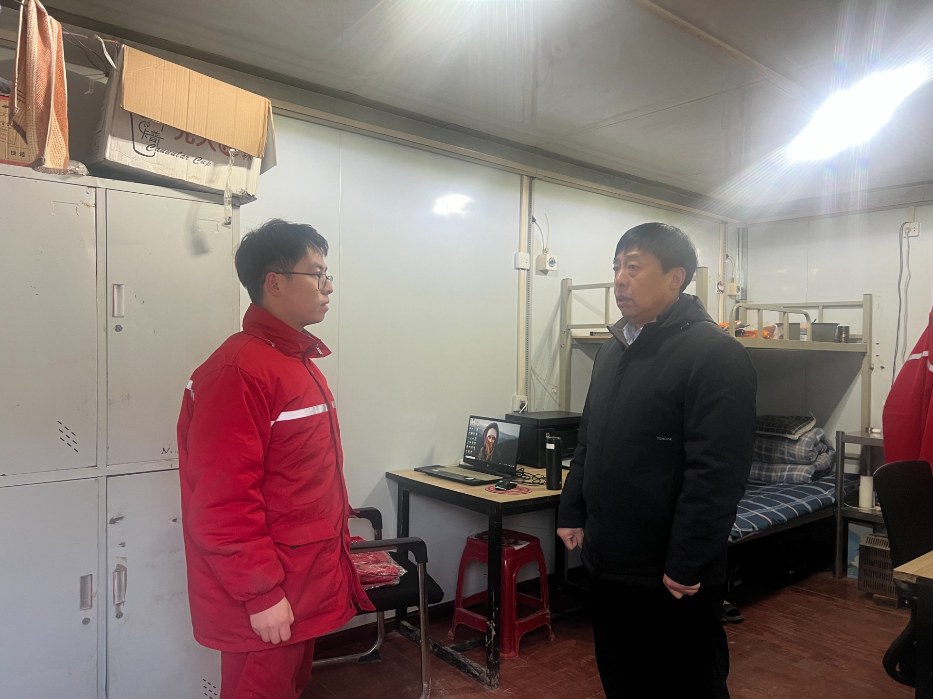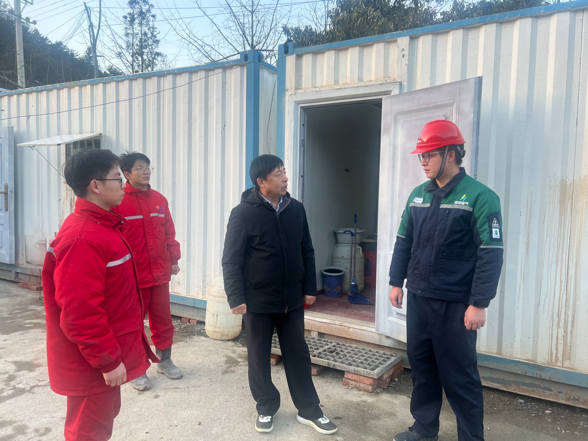 在施工现场,慰问组一行认真查看场站工艺区及周边环境,仔细检查场站安全运行、设备维护保养以及应急物资储备情况,详细询问井区当前生产情况,深入了解各项安全生产工作部署及保障措施落实进度。走进生活区域,逐一检查宿舍、厨房等区域,了解人员配置和值班员工生活保障细节,与职工们亲切交谈,关切询问他们的身体状况、思想动态,送上诚挚的节日祝福,同时要求注意防火防电防冻,严禁酒后上岗、睡岗等问题。