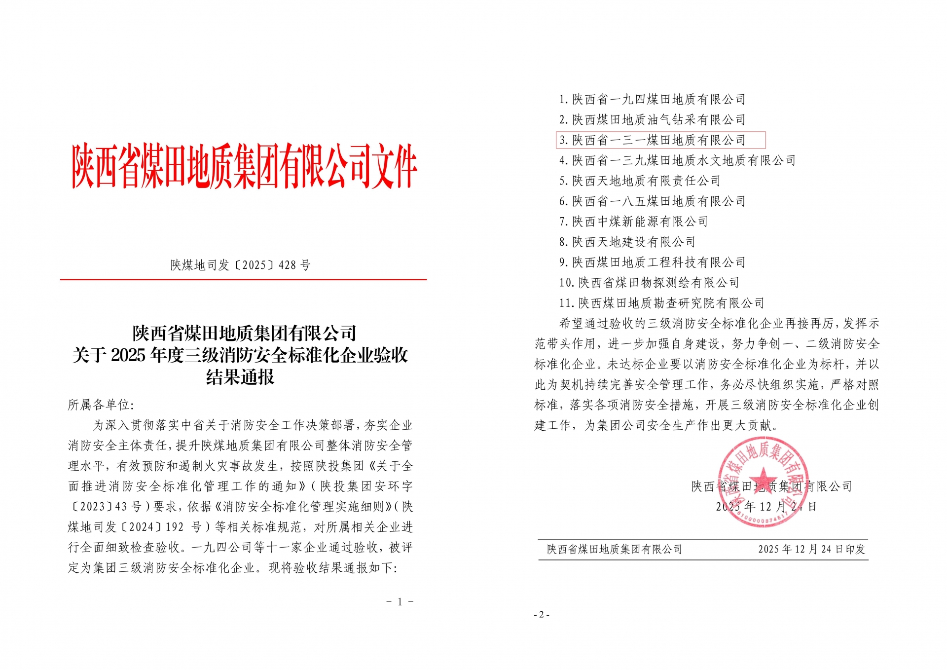 喜讯!一三一公司顺利通过陕煤地质集团2025年…