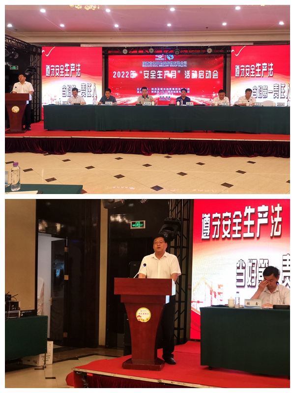 今年6月是第21个全国“安全生产月”。为进一步落实安全生产责任,严格履行安全职责,有力推动陕煤地质集团安全稳定高质量发展。5月31日,陕煤地质集团在韩城召开以“遵守安全生产法、当好第一责任人”为主题的2022年“安全生产月”活动启动会。集团副总经理姚建明,总经济师、总法律顾问雷鸣,副总经理杨文海出席会议。集团安全环保监察部副主任张鑫主持会议。