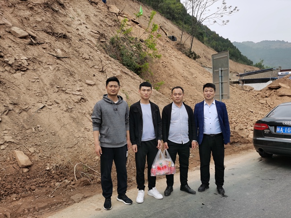 图为公司副总经理薛超一行到薛峰三组崩塌治理工程施工现场进行安全检查,为一线职工送去节日慰问。