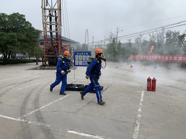 图为油气技术服务公司修井队进行中毒急救演练和防火演练。(摄影报道:苗丹)