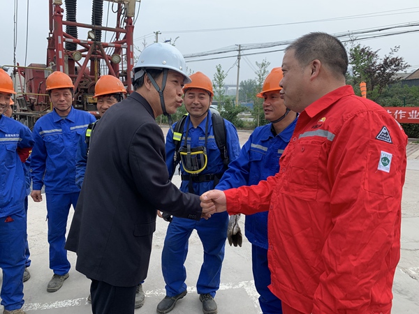 4月23日,陕煤地质集团副总经理姚建明、生产技术处副处长樊占龙、信息中心主任李小军一行到我公司督导检查春季安全生产工作。我公司总经理柴宏有、副总经理黄建生等陪同检查。