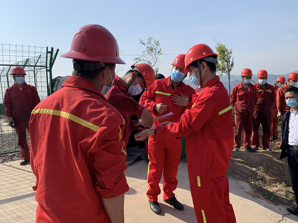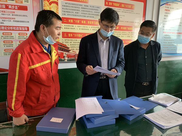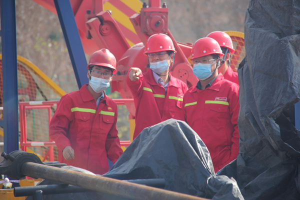 董总一行首先到我公司油气技术服务公司检查了疫情防控和安全生产相关材料。随后,实地察看了由我公司油气技术服务公司施工的中石油煤层气有限公司韩城分公司井下作业项目部宜4-18向1#井场施工现场运作情况,并和负责项目的工作人员进行了深入交流,对项目的总体运作情况进行了详细了解。